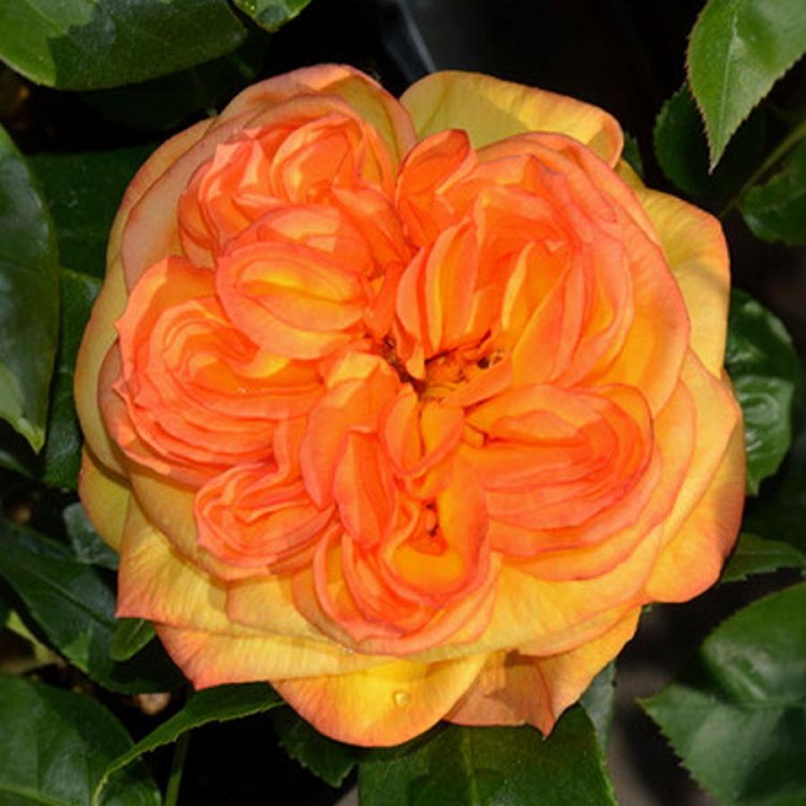 Цветки розы крупные, диаметром 9-10 см, одиночные, расположены на стебле по одному цветку. Окраска цветков может быть оранжевой, желтой или хамелеонной (с переливами). Основная окраска цветка – желто-оранжевая. Цветок яркий и насыщенный. Аромат розы фруктовый с зелеными нотами цитруса и манго. Интенсивность аромата этого сорта высокая. Куст этого сорта достигает высоты 100-130 см, что делает его идеальным для выращивания в горшках или на небольших участках.