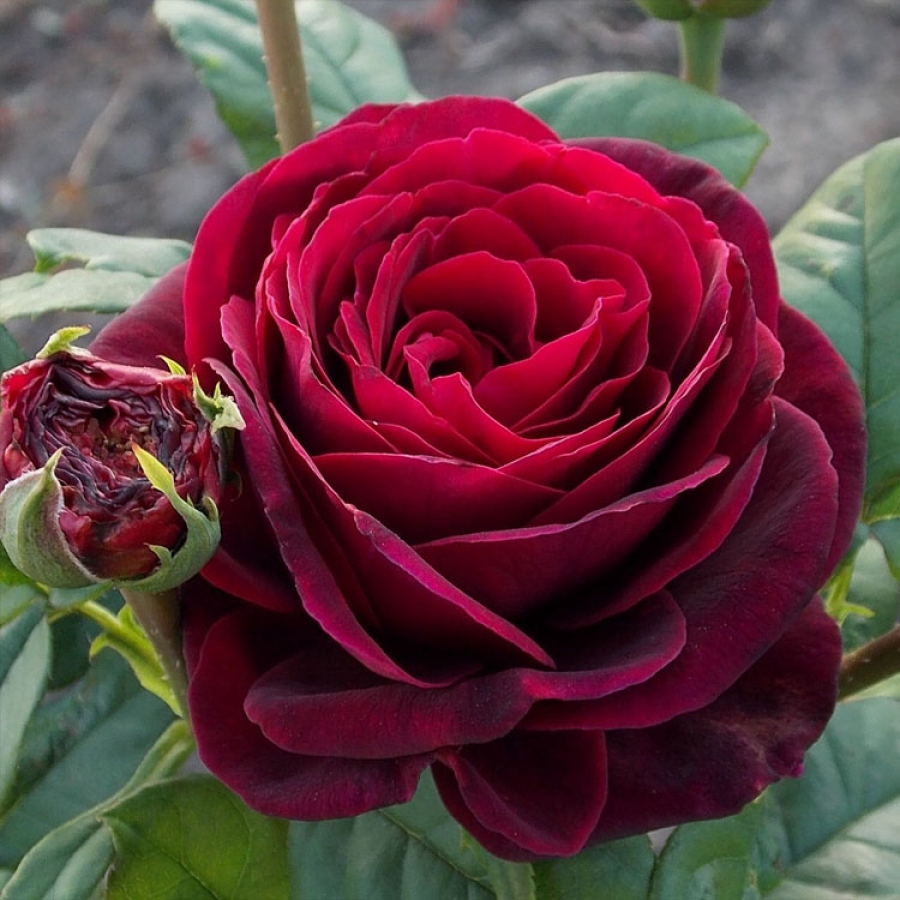 Совершенно особенный сорт! Цветки диаметром 5-8 см, густомахровые (как у старинных английских роз), как бы разделены на 4 части, бархатистые, интенсивного бордово-красного цвета, в серединке светлеют спустя некоторое время. Аромат розы, экстремально сильный. Очень привлекательно выглядят кусты с длинными ниспадающими побегами. Для этого сорта рекомендуется подбирать хорошо освещённое место. Сорт награждён золотой медалью «Лучшая ароматная роза 2002 года» на международной выставке в Риме.