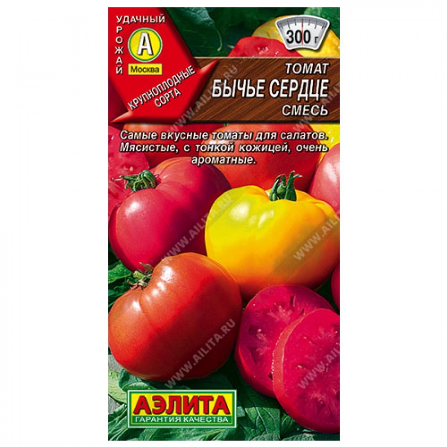 Смесь популярных крупноплодных сортов томата непревзойденного вкуса. Для открытого грунта и пленочных теплиц. Включает среднеспелые сорта: Бычье сердце – 40%, Бычье сердце розовое ® – 30% и Бычье сердце оранжевое – 30%. Растения высотой 140-180 см, начинают плодоносить на 110-115 день после всходов. Томаты* массой 200-300 г (отдельные до 400 г), с тонкой кожицей, мясистые, ароматные. Подходят для кулинарной переработки и приготовления соков. Урожайность в защищенном грунте – более 12 кг/м².