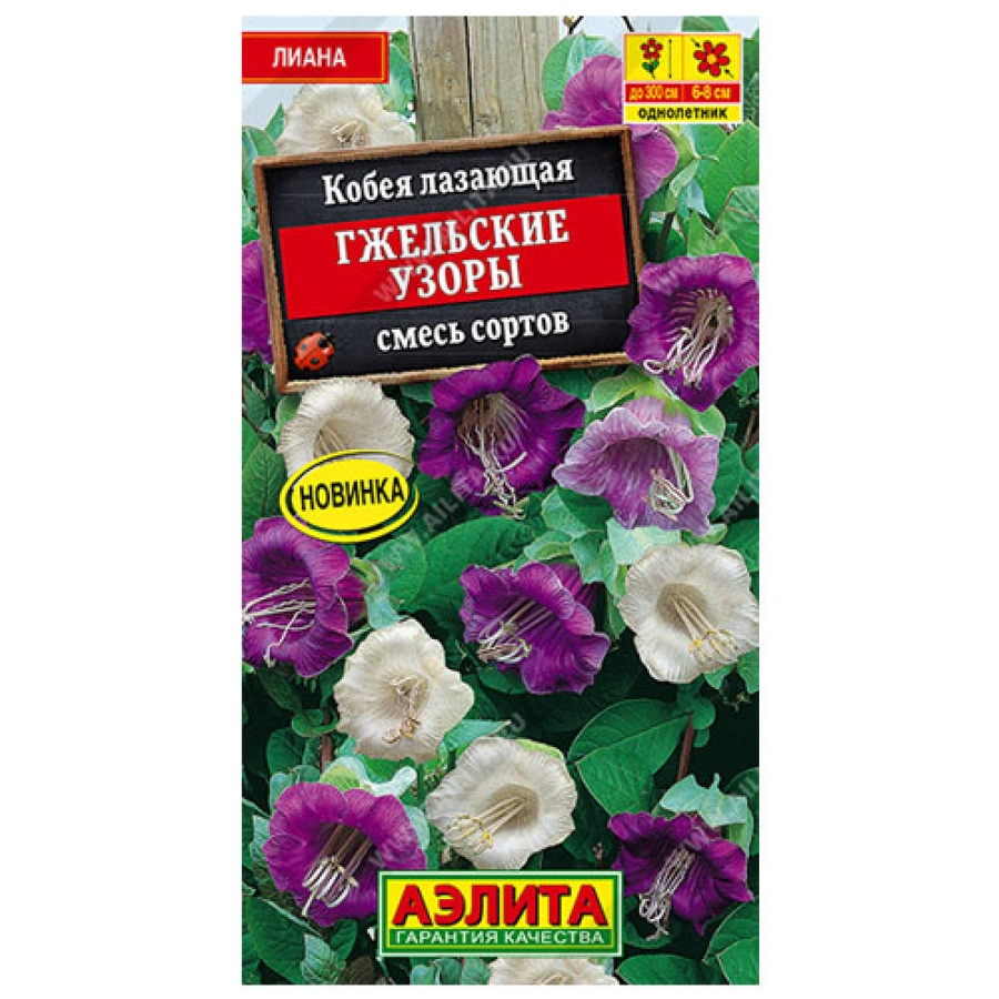 Эффектная вьющаяся лиана. Растение высотой до 3 м, быстро растет и образует красивый водопад из густой изумрудной листвы и крупных цветов-колокольчиков, Ø 6-8 см. Кобея идеально подходит для вертикального озеленения фасадов, веранд, беседок, шпалер, стен. Растение можно сохранить в прохладном помещении до следующей весны.