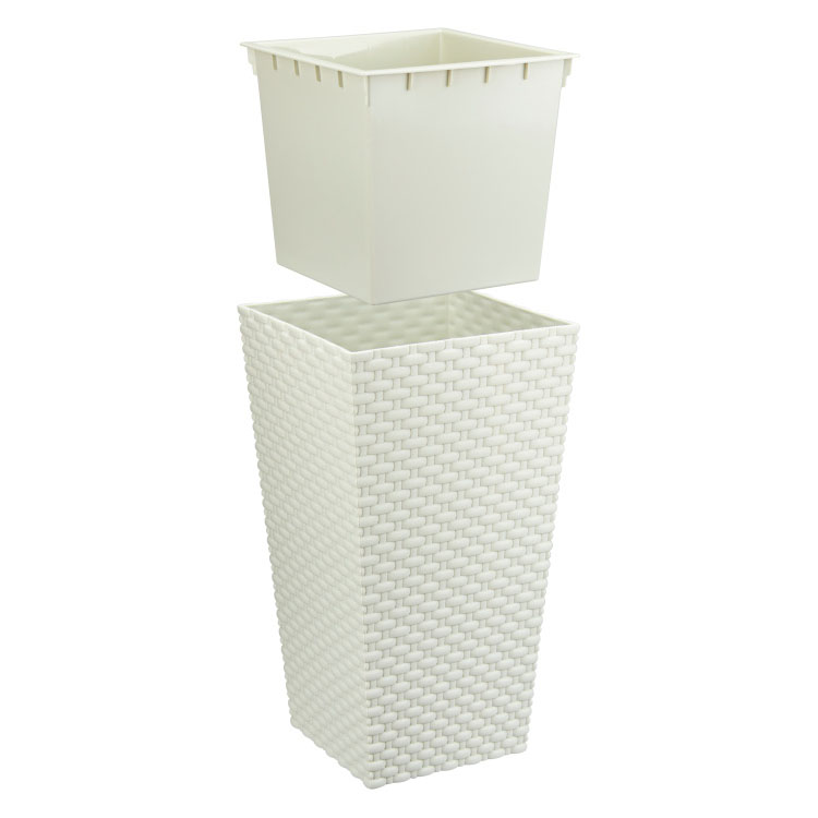 Кашпо комплектуется вкладышем, высота которого меньше высоты кашпо. Это позволяет экономить количество почвы и высаживать растения с любой корневой системой.