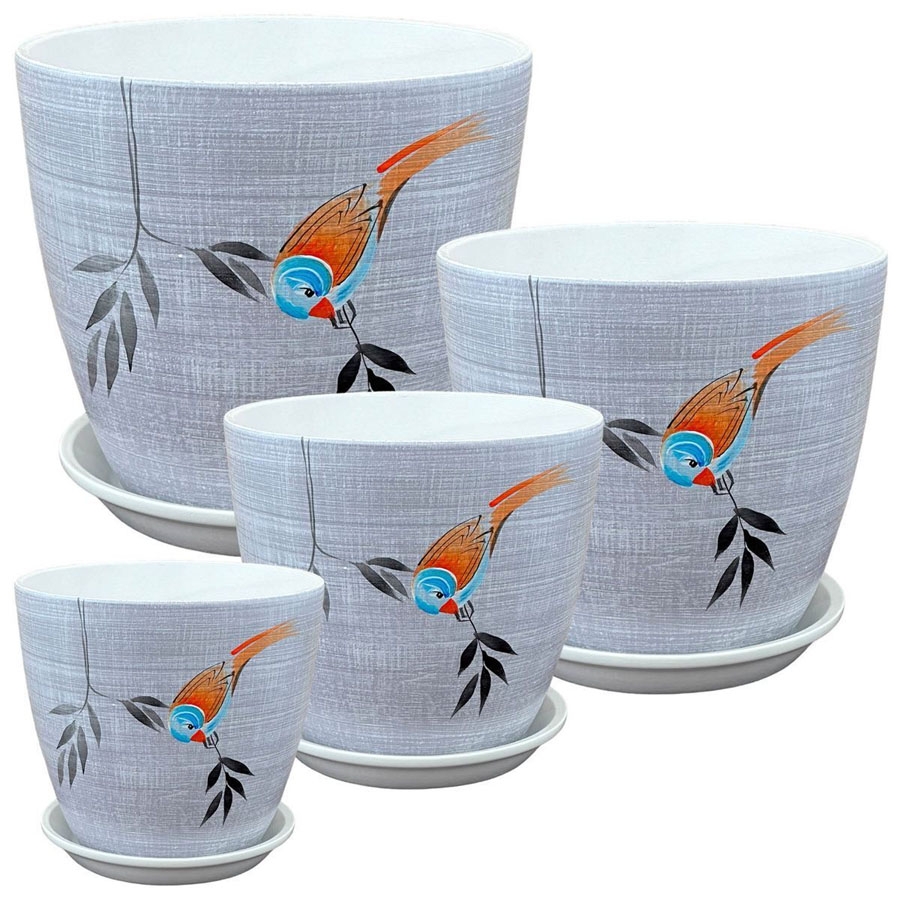 Комплект Роспись Бутон птичка на ветке из 4-х горшков